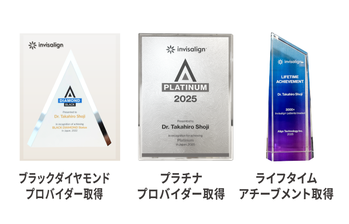 また、2025年度には同じマウスピース矯正であるインビザラインにおいてプラチナプロバイダーを取得いたしました。過去にはブラックダイヤモンドをはじめとする各種認定も多数取得しており、継続的に高い評価をいただいております。